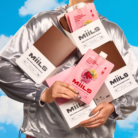 There are a million reasons for skipping a healthy breakfast, from sleeping in to expired milk. But with MIILS, you never have to miss a meal again. Our healthy, tasty shakes with crispy crunchies deliver up to 100% of the daily recommendation of important vitamins, plus 19g of protein and only 3g of sugar. Just add water, shake and go.